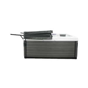 - Folds up against the spa cabinet while not in use